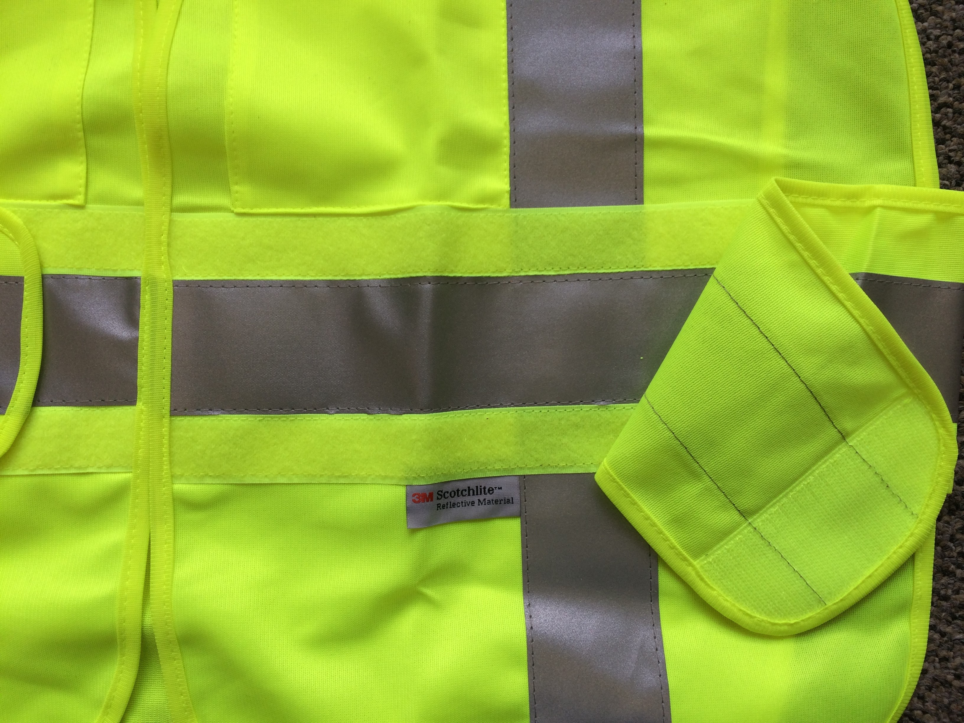 - Reflective material: 1 horizontal on body and waist straps, 2 verticals on front and 1 "X" on back.