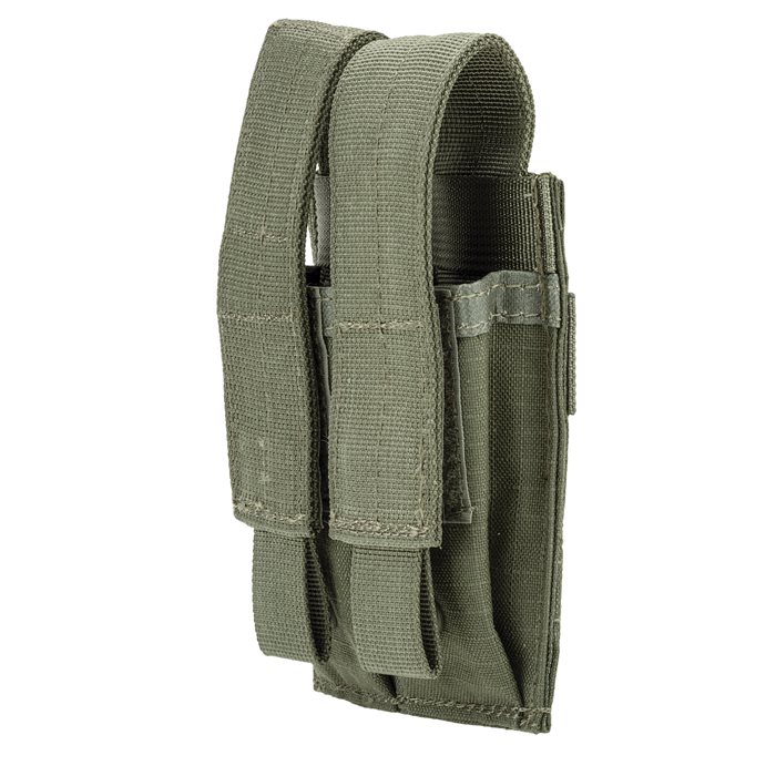 Mounts to any S.T.R.I.K.E.® or PALS/MOLLE platform by weaving the integral straps on the back of the pouch in and out of the platform webbing. Constructed of 500 denier nylon (solid colors) or 500 denier CORDURA® nylon (MultiCam®).
